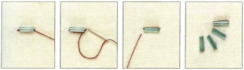 8. После нанизывания последнего цилиндрика, игла выводится на изнанку работы между последним и предшествующим ему цилиндриками.