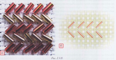 По этой методике каждый ряд стеклянных трубочек пришивается с противоположным предыдущему ряду наклоном.