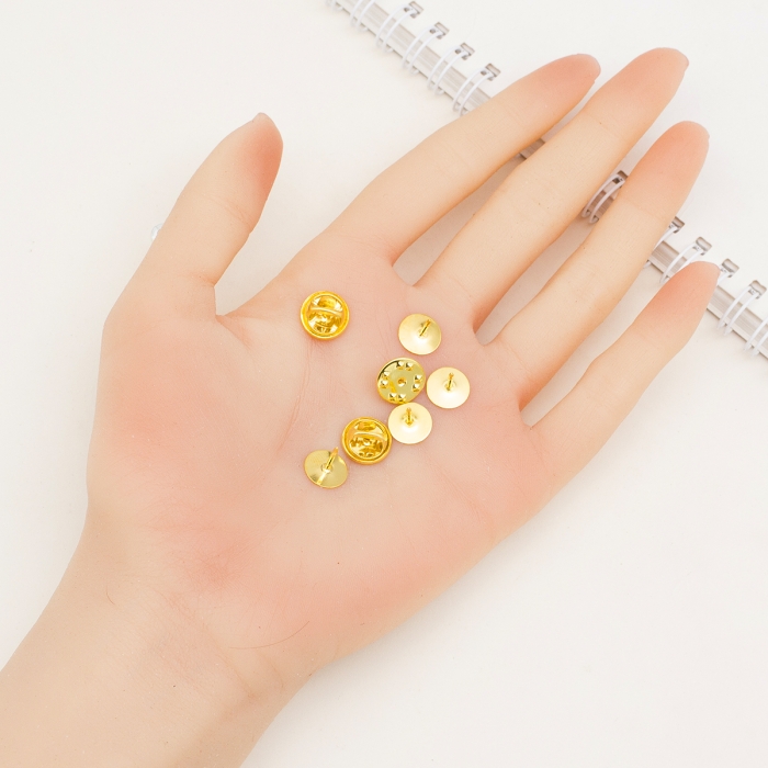 Основа для Значка или Броши, с Платформой и Застежкой Цанга-Бабочка, Золото, Платформа 8мм, Застежки 11.5мм, Отв. 1.2мм, Пин 1мм (УТ100026251)