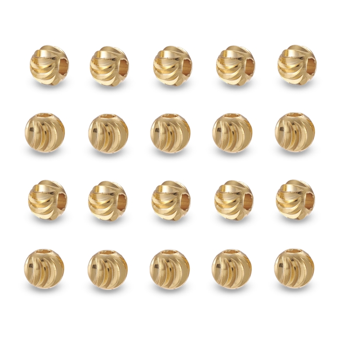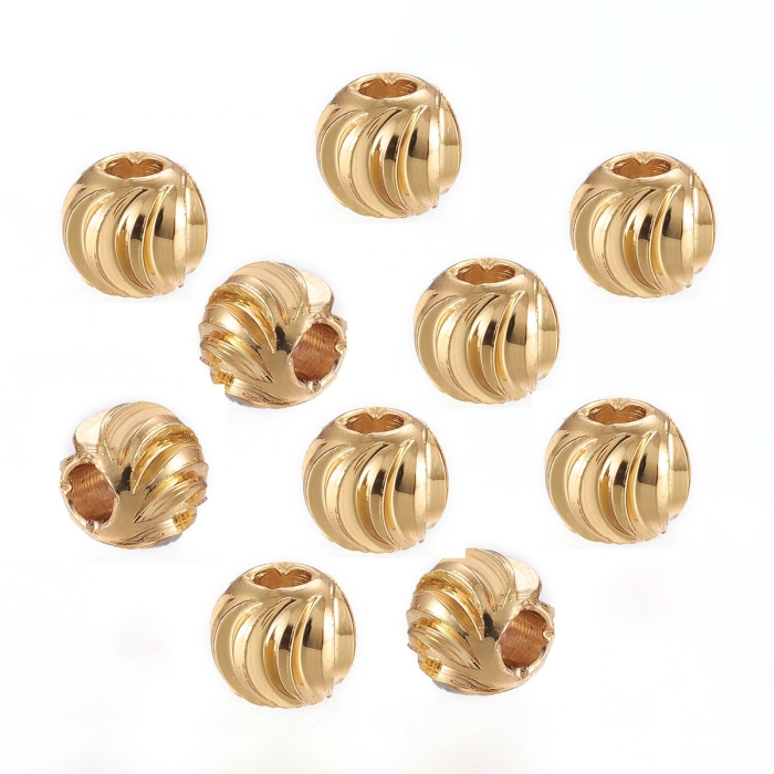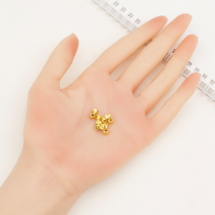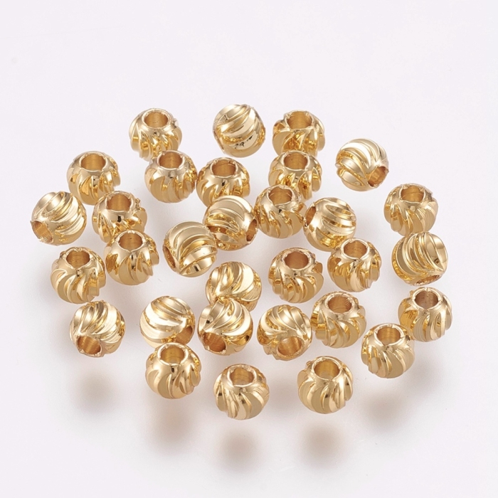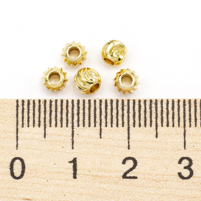 Бусины Латунь, Круглые, Рифленые, Стойкое Покрытие, Позолота 18К, 5х4мм, Отверстие 2мм, (УТ100031121)Упаковка: